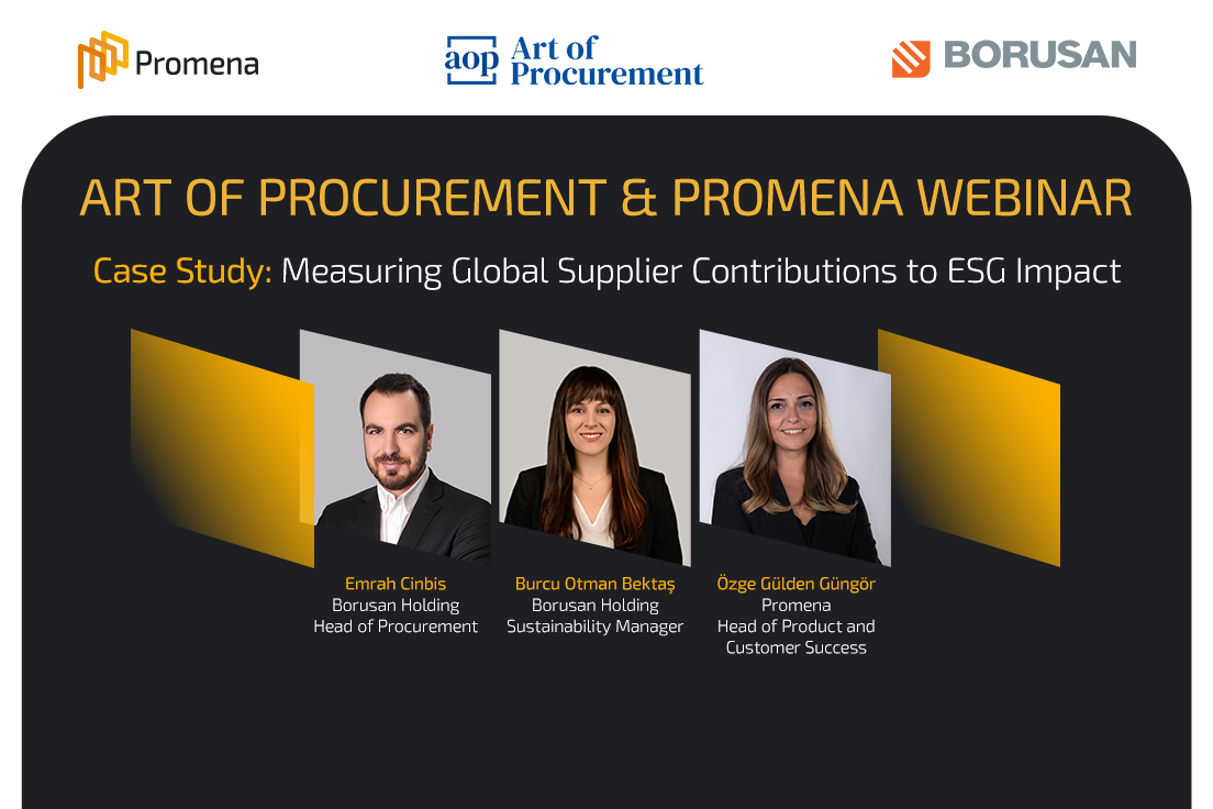 Promena organized a webinar on 13 March 2024 about ESG practices in supplier relationships in collaboration with Art of Procurement, where valuable guests from Borusan Holding are hosted to show how Promena's innovative solutions have been instrumental in Borusan Holding's trailblazing ESG journey. This session was a beacon for procurement professionals looking to delve deep into the complexities of ESG strategies and the regulatory framework.